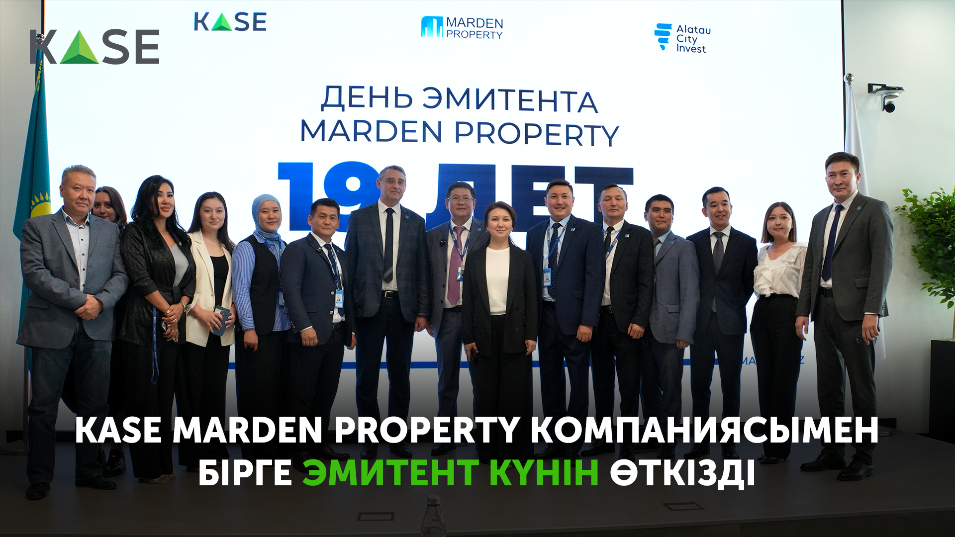 9 қыркүйекте KASE Қазақстандағы коммерциялық жылжымайтын мүлік саласының көшбасшысы, еліміз бойынша жалпы көлемі 700 мың м²-ден астам 81 нысанды басқаратын Marden Property компаниясының басшылығымен бірге Эмитент күнін өткізді.