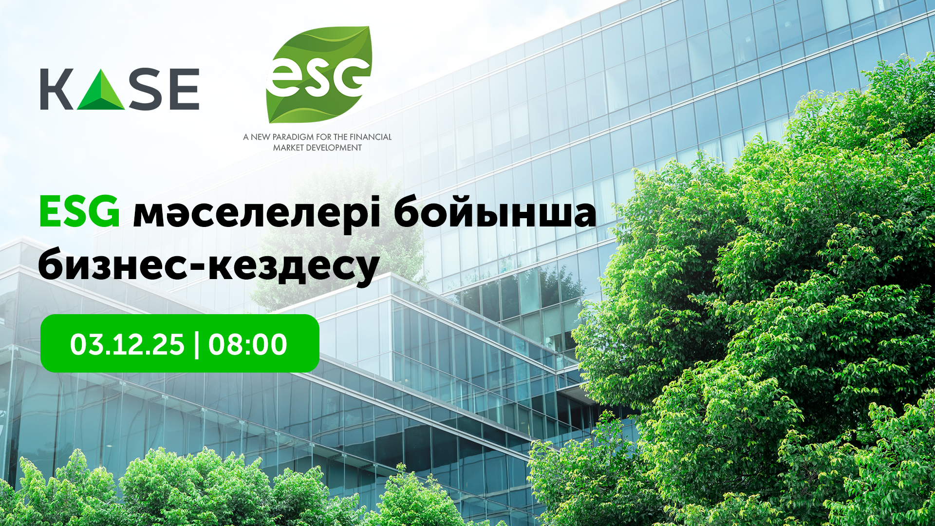 Тұрақты даму күн тәртібін әрі қарай іске асыру аясында KASE қаржы нарығының қатысушыларын 2025 жылдың 03 желтоқсанында, сағат 08:00-де, Алматы қаласы, Марков көшесі, 44 мекенжайындағы Эко-хабта өтетін ESG мәселелеріне арналған бизнес-кездесуге шақырады.